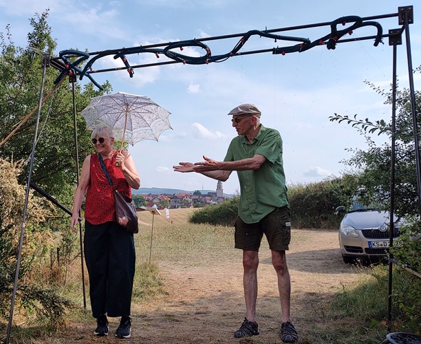 Am Sonntag, den 31.8.25 um 17 Uhr laden die Veranstalter zur Preisverleihung auf die Wiese unter der Warte. Die Preisjury bestehend aus Simone Maria Dietz (Kunsthistorikerin), Jürgen Heinz (Künstler und Preisträger 2021) und Britta Ischka (Künstlerin) hat fast zwei Tage beraten und die Preisträgerinnen und Preisträger des diesjährigen bewegten winds ausgewählt. Bei so viel künstlerischer Vielfalt ein langer Prozess. Insgesamt werden 7.000€ Preisgelder vergeben. Gemeinsam mit Landrat Andreas Siebert wird Kuratorin Reta Reinl die Preise vergeben und die Begründungen der Jury verlesen.